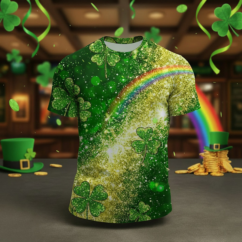 St. Patrick's Day Short Sleeve T-Shirt for Men Ireland Leprechaun Lucky Irish Shamrock Graphic Tee 3D Print Crew Neck St. Paddy's Day Top