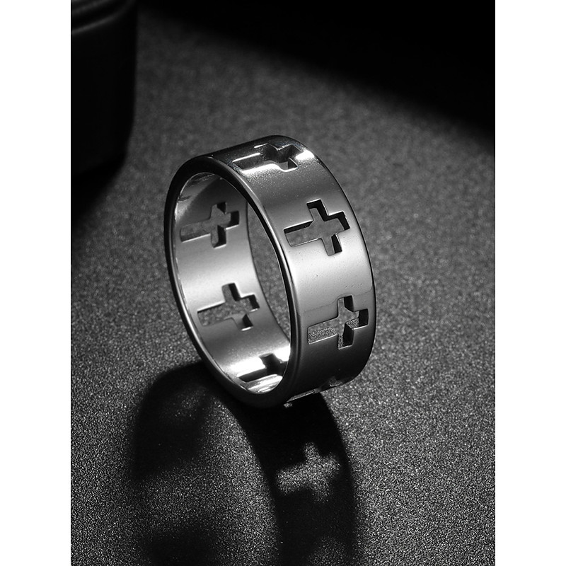 Men's Titanium Steel Cross Ring, Durable Stainless Gothic Band Jewelry, Fashion Religious Statement Ring for Daily Wear, Party and Gifts