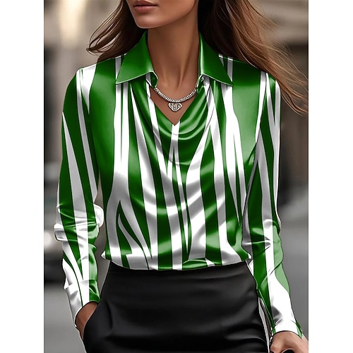 Per donna Camicia Grafico Geometrico A righe Elegante Casual Manica Lunga Scollo a Cascata Top Regolari Lavoro Abbigliamento da sera Quotidiano Arricciato Drappeggiato Blu Viola Marrone Verde Estate