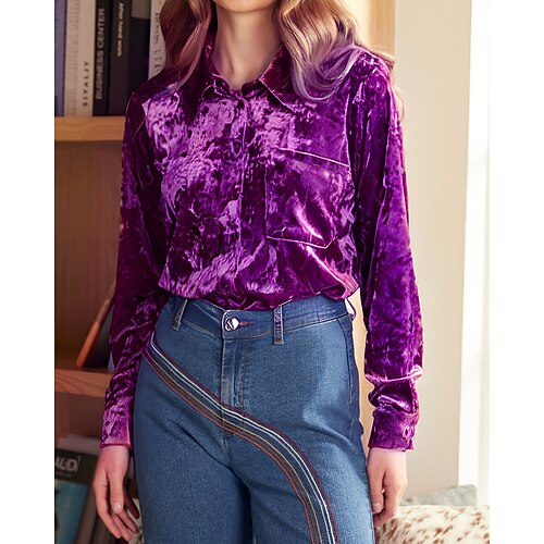 Per donna Velluto Elegant Elegante Blusa Semplice Bohemien Vintage Quotidiano Manica Lunga Colletto a Camicia Top Regolari Abbigliamento da sera Quotidiano Ferie Bottoni Viola Arancione Verde
