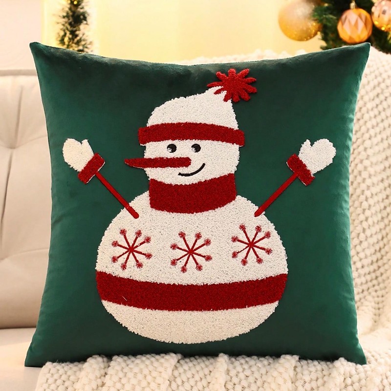 Christmas Snowman Embroidered Throw Pillow, Holiday Decorative Cushion Cover for Sofa Couch Bed