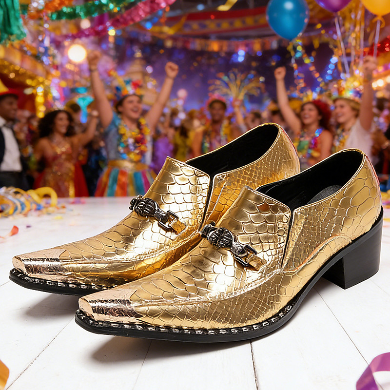 Men's Gold Snake-Print Dress Shoes – Fashion-Forward 100% Premium Cowhide Leather, Pointed Toe Design for Carnival, Party and Special Occasions