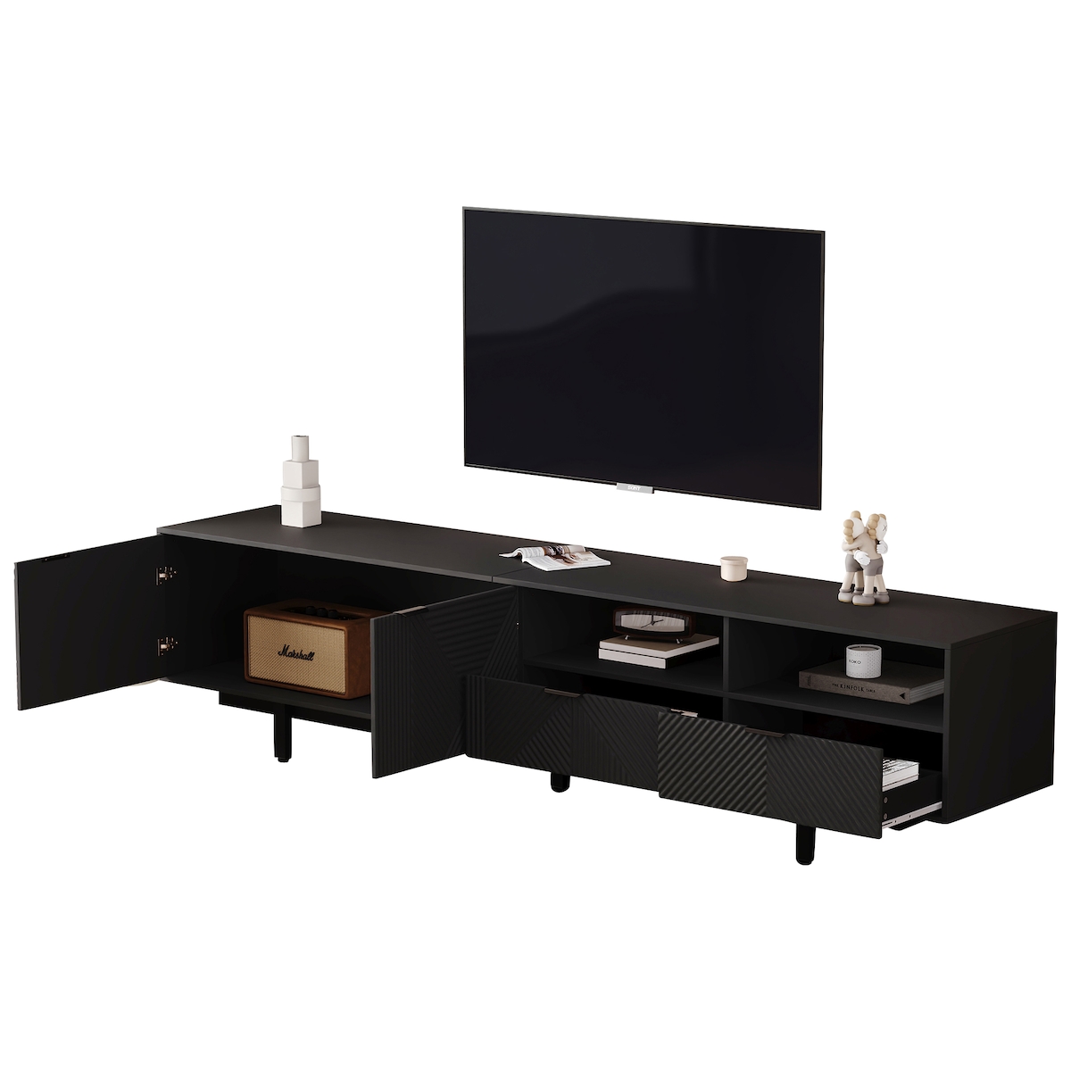 Lowboard INOSIGN "Monaco in Breite 181 cm, TV-Schrank mit Tür, Klappe und Schubkasten", weiß (weiß hochglanz lack, mercure nb holzstruktur), B:181cm H:67cm T:42cm, Sideboards, Lowboard, Mediaboard – sanftes Schließen, edles Design, Platz für alles