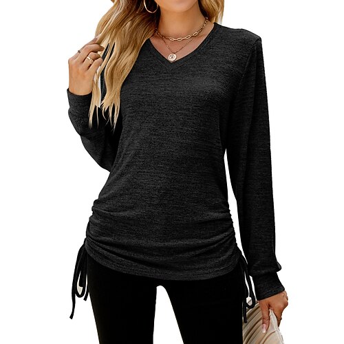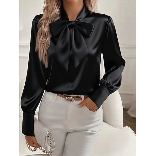 Per donna Blusa Tinta unica Semplice Elegante Essenziale Casual Manica Lunga Scollo a V Top Regolari Quotidiano Fiocco Nero Bianco Rosa Cachi Primavera Autunno Inverno