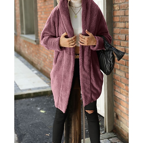 Per donna Cappotto Invernale Cappotto Teddy Caldo Confortevole Tasca Aperturaanteriore Casual Tinta unica Vacanza Streetwear Casuale Abbigliamento quotidiano Lungo Collo ripiegato Vestibilit
