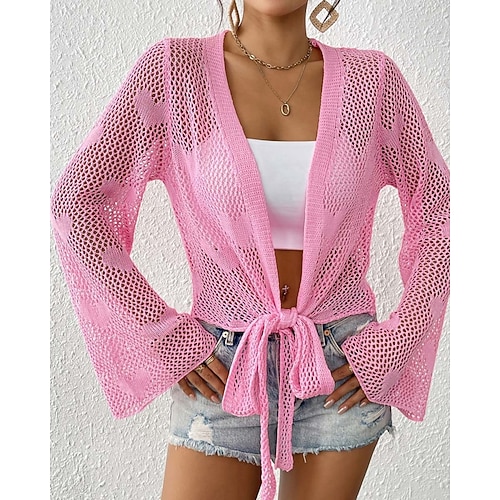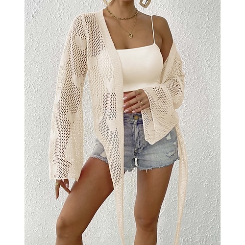 Per donna Costumi da bagno Copricostume Vestito da spiaggia Costume da bagno Lavorato a maglia Vacanza Abbigliamento da Spiaggia Tinta unica Scollo a V Maniche Corte Costumi da bagno
