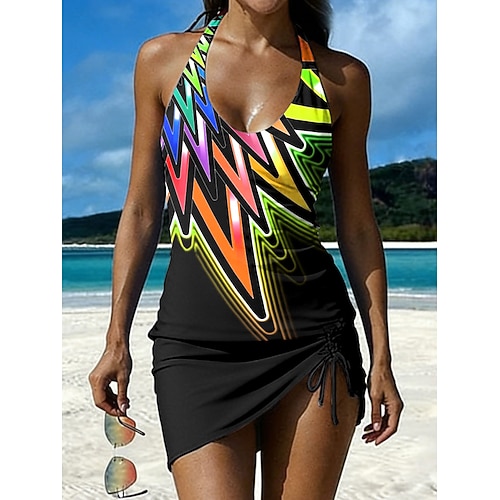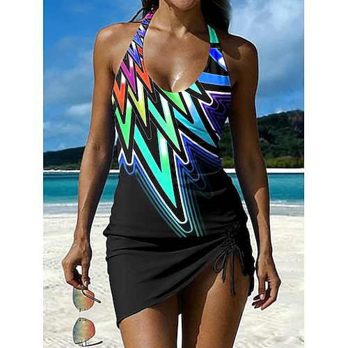 Per donna Costumi da bagno Tankini Gonna Costume da bagno Coulisse Elegante Vacanza Grafico Geometrico Collo a U Senza Maniche Costumi da bagno