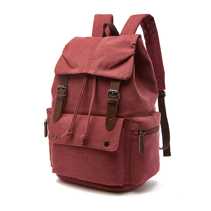 Men's Vintage Canvas Backpack with Leather Straps, Multi-Pocket Travel Rucksack for School, Work, Hiking and Outdoor Use