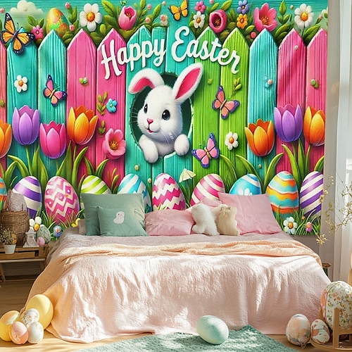 Arazzo appeso Uova di coniglio Arte murale Grande arazzo Decorazione murale Albero della vita Fotografica Sfondo Coperta Tenda Decorazione per casa Camera da letto Soggiorno