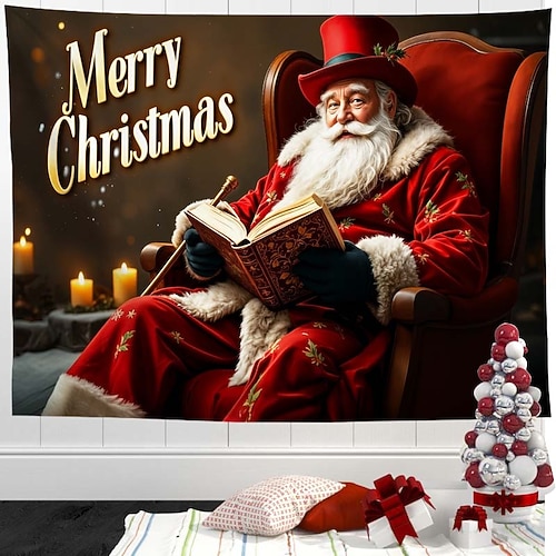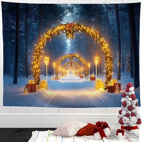 Arazzo natalizio di Babbo Natale – arazzo da parete festivo, scena natalizia invernale innevata, arazzo decorativo per casa, camera da letto, soggiorno