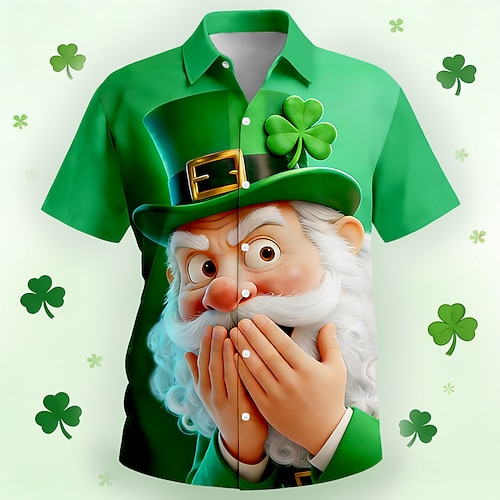 San Patrizio 2026 Blusa / Camicia Cartone animato Manga Trifoglio Irlandese Grafico per Per uomo Adulti Stampa 3D per Giorno di San Patrizio Casual Quotidiano Festival