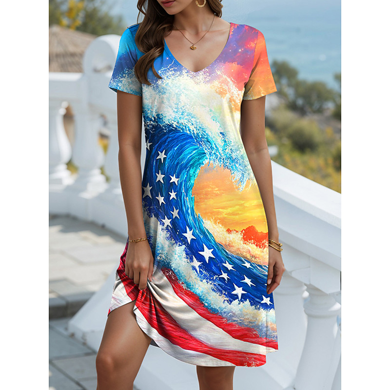 Women's Patriotic Dress Mini Dress Casual Dress Petite Dress T Shirt Dress Casual Vacation Birthday Casual Loose Fit Flag Red White And Blue Short Sleeve V Neck