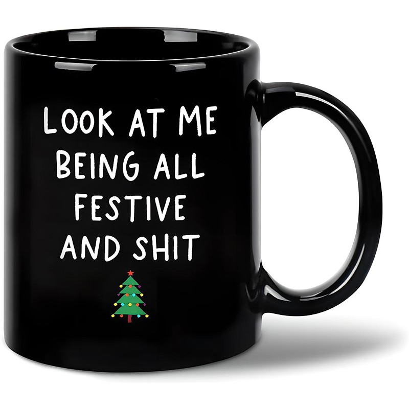 Christmas Gift Mug Black Graphic Funny Coffee Mug 330ml/12oz Look At Me Being All Festive And Shit Ceramics Cup Retro Vintage Design