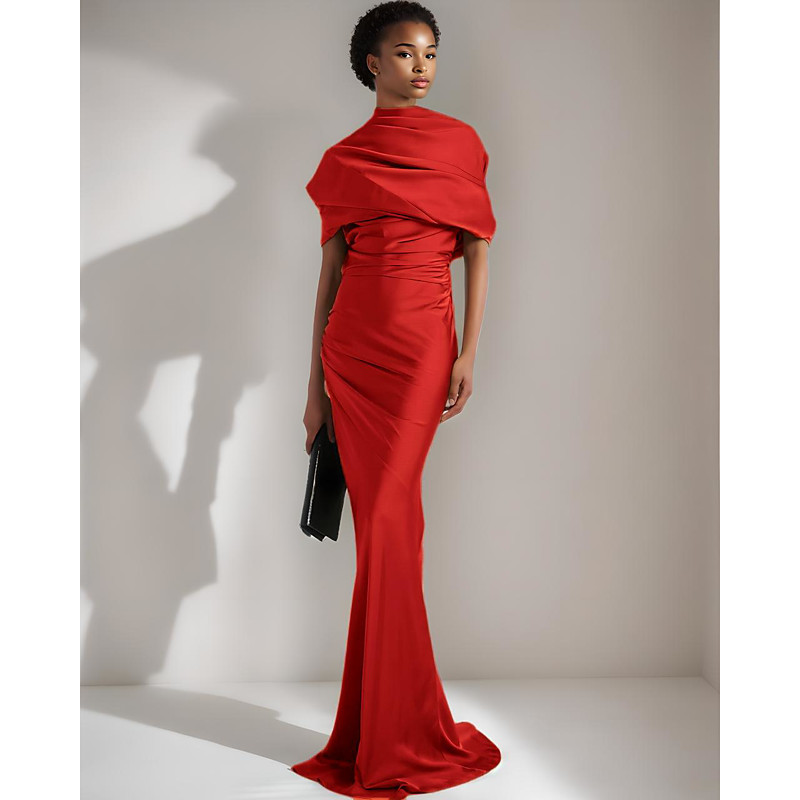 Sheath Column Floor Length Prom Dresses Evening Gown Ball Gown Formal Dress Elegant Short Sleeve High Neck Wedding Formal Spandex with Ruched Shawl
