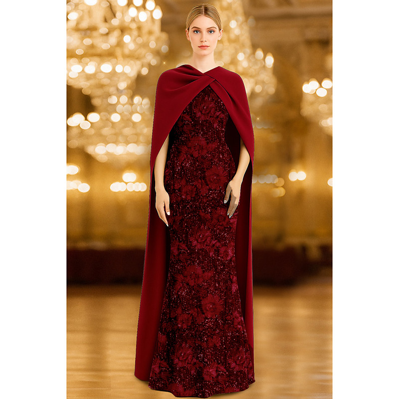 Sheath Column Floor Length Beaded Eembroidered Formal Dresses Mother of the Bride Dress Ball Gown with Cape Evening Gown Formal Dress Elegant Celebrity Style Short Sleeve Crew Neck Garden Party