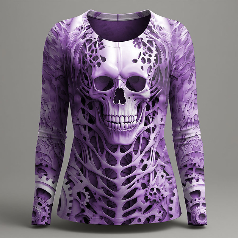 Women's T Shirt Graphic Skull Skeleton Vintage Fashion Stylish Long Sleeve Crew Neck Round Neck Regular Tops Daily Weekend Print Red Purple Green Gray Summer Spring Fall