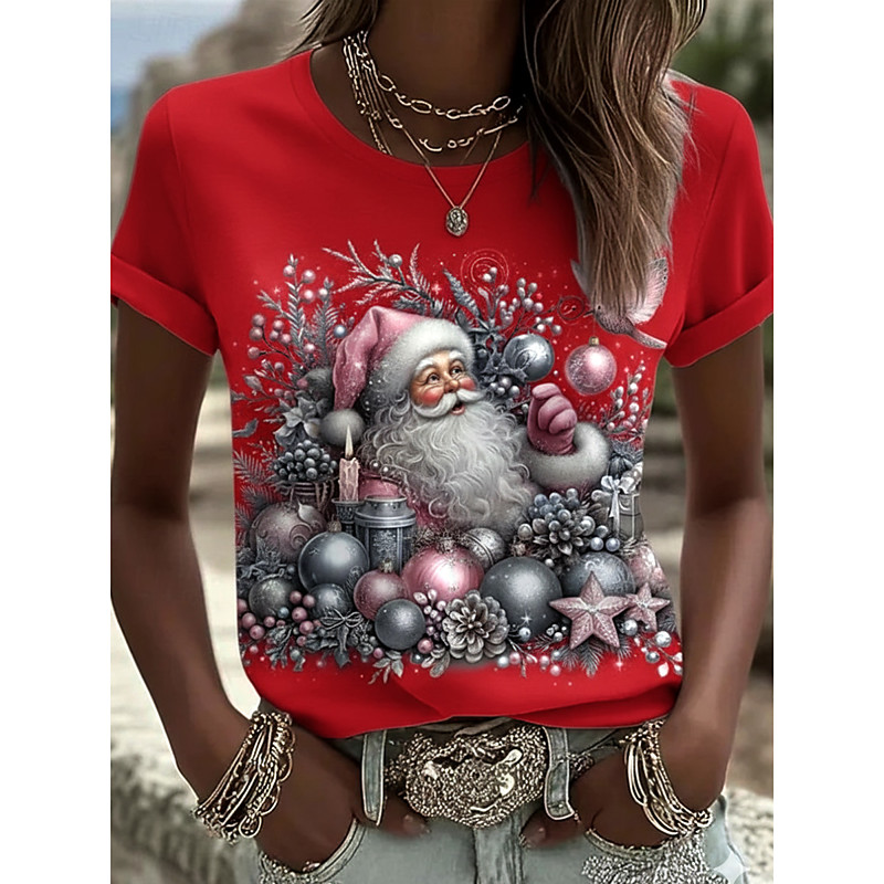 Christmas Women's T Shirt Graphic Christmas Vintage Stylish Classic Short Sleeve Crew Neck Round Neck Regular Tops Daily Print Blue Black White Pink Red Summer Spring Fall Winter