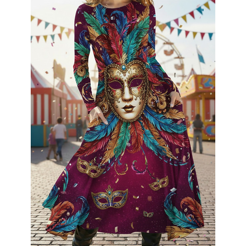 Women's Long Dress Maxi Dress Casual Dress Swing Dress Boho Dress Vintage Daily Outdoor Weekend Regular Fit Ombre Feather Long Sleeve Crew Neck Purple Spring Fall Winter