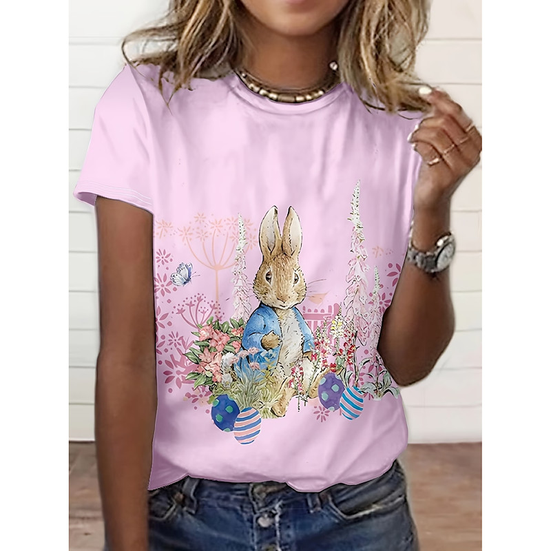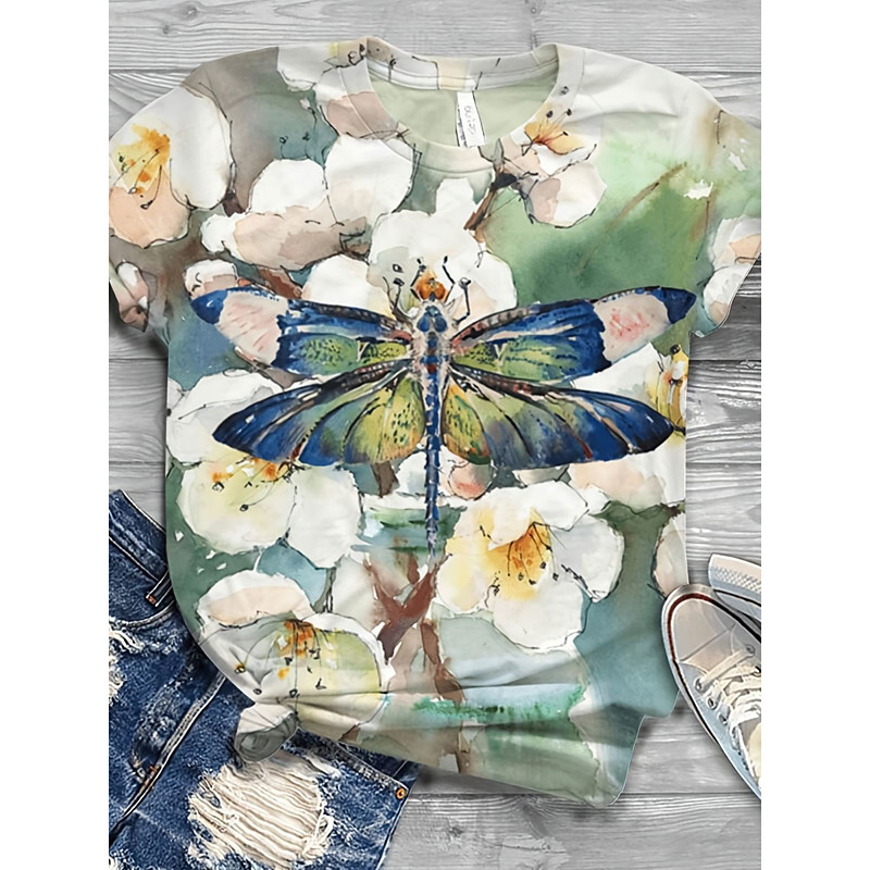 Women's T Shirt Floral Graphic Animal Vintage Stylish Classic Short Sleeve Crew Neck Regular Tops Daily Weekend Print Blue Yellow Pink Green Beige Summer Spring Fall Winter
