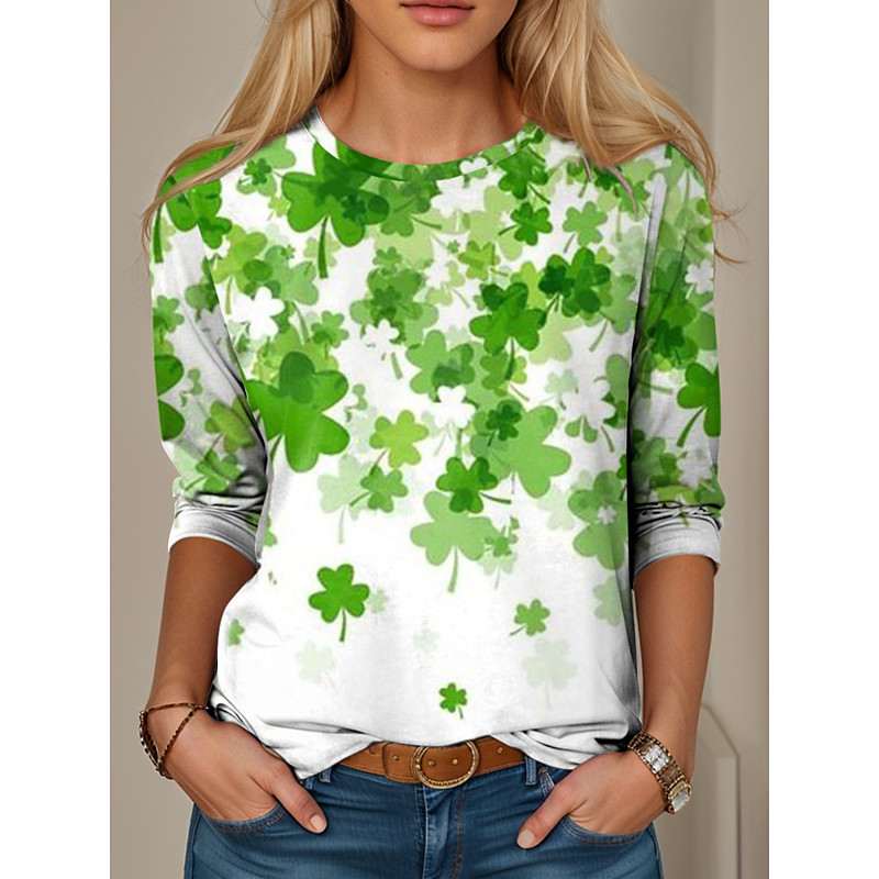 St. Patrick's Day Women's T Shirt Shamrock Stylish Casual Long Sleeve Crew Neck Regular Tops Daily Print Green off-white Spring Fall