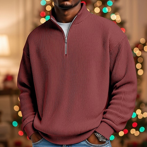 Per uomo Camicia di Velluto a Coste Polo Vacanza Streetwear Zip a un quarto Manica Lunga Moda Essenziale Tinta unica Cerniera Autunno Primavera Autunno Autunno Inverno Vestibilità comoda Nero