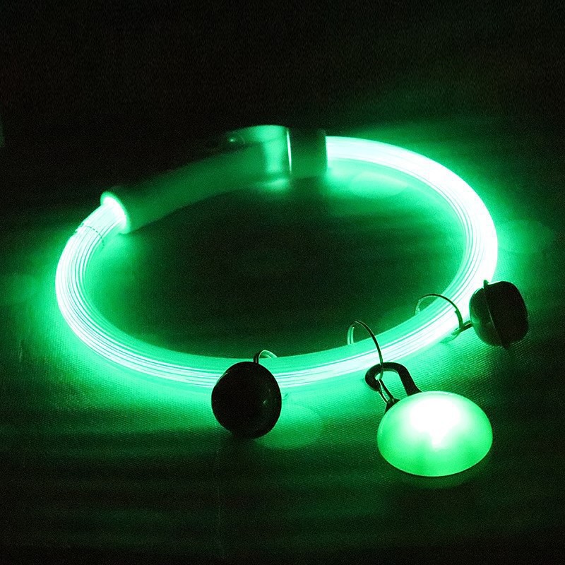 Rechargeable LED Dog Collar, 3 Flash Mode Waterproof Night Safety Light Collar with Adjustable Strip and Bell for Walking Training Outdoor Dress up Small Medium Large Dogs Decor