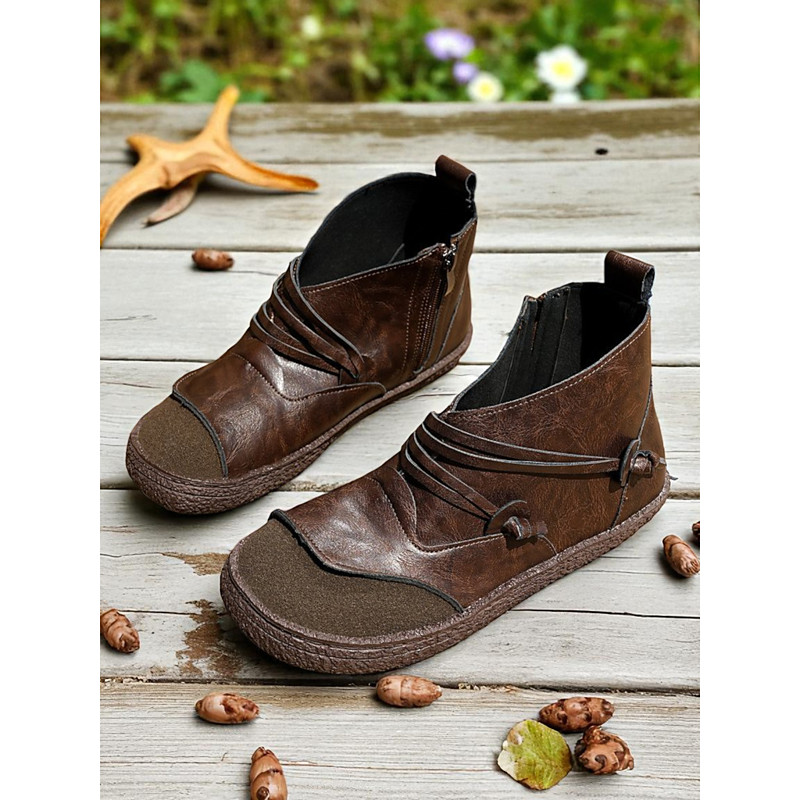 Women's Vintage Coffee Faux Leather Booties with Side Zipper – Comfortable Ankle Boots for Casual Wear, Outdoor Walks and Everyday Outfits
