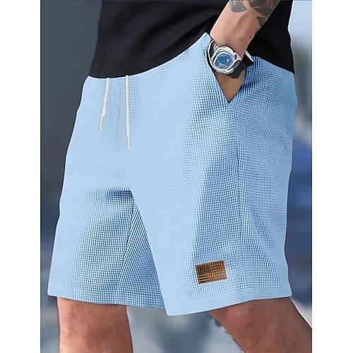 Herren Waffel-Shorts Shorts Sommershorts Freizeitshorts Tasche Kordelzug Elastischer Bund Einfach Komfort Atmungsaktiv Kurz Outdoor Urlaub Sport Lässig Schwarz Weiß Mikroelastisch