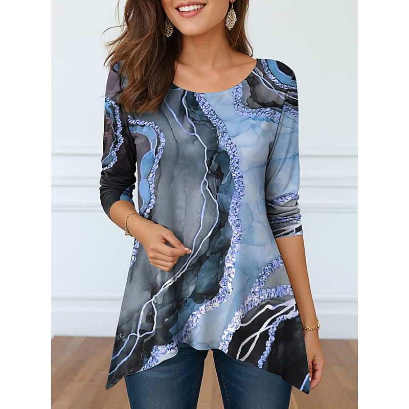 Women's T Shirt Graphic Tribal Vintage Stylish Casual Long Sleeve Crew Neck Long Tops Daily Print Blue Brown Green Khaki Spring Fall