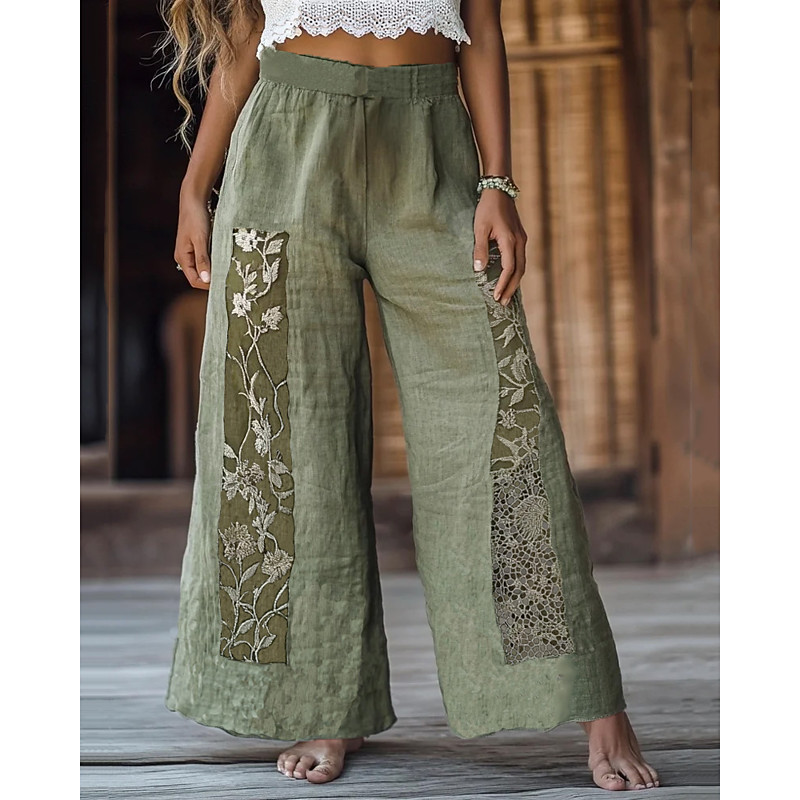 Women's Cotton Linen Wide Leg Vacation Vintage Ethnic Style Full Length High Waist Plain Inelastic Formal Vacation Street Light Blue Lake blue rice white Coffee brown Summer Loose Fit