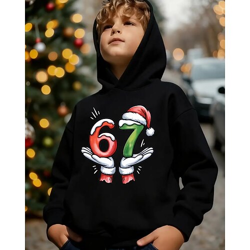 Weihnachten Unisex Jungen 3D Grafik Lustiger Slang 67 Kapuzensweatshirt Pullover Langarm 3D-Druck Herbst Winter Sport Mode Streetwear Kinder 4-12 Jahre Mit Kapuze Outdoor Lässig Täglich Normale