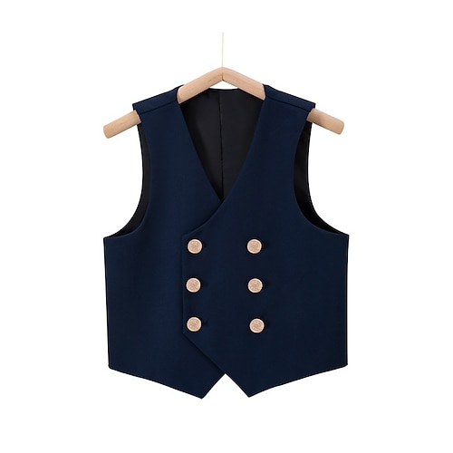 Kinder Unisex Weste Oberbekleidung Einfarbig Ärmellos Tasche V-Ausschnitt Knöpfe Mantel Outdoor Mode Cool Täglich Schwarz Marineblau Grau Frühling Herbst 4-12 Jahre
