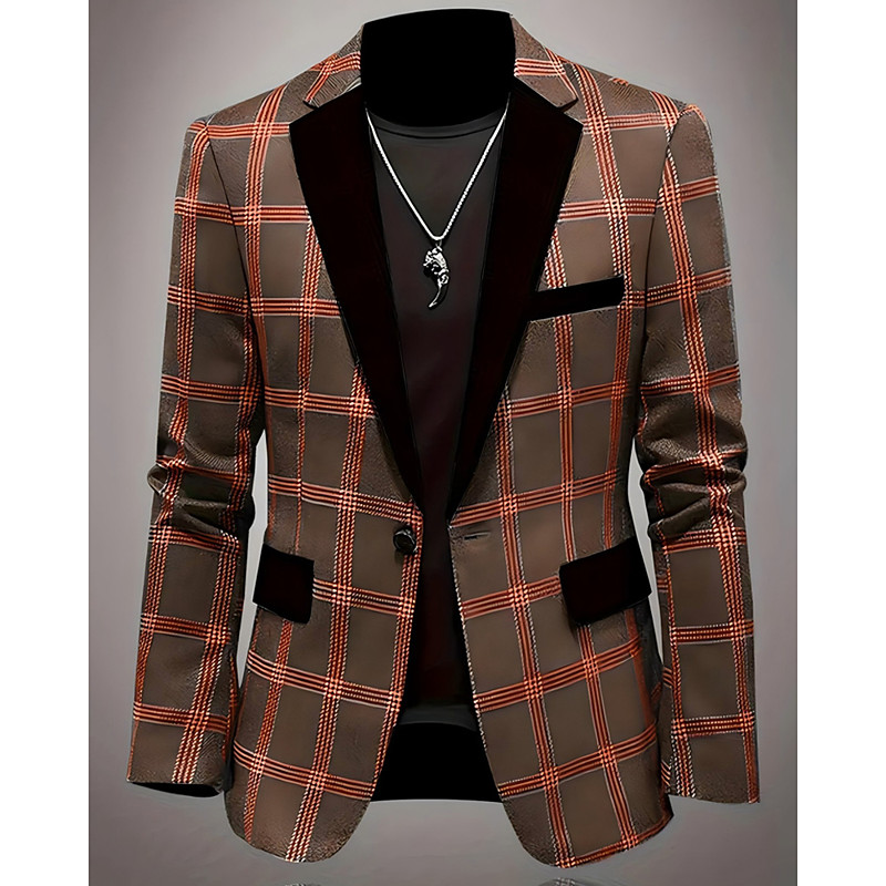 Men's Blazer Business Cocktail Party Wedding Party Fashion Casual Spring Fall Polyester Plaid Pocket Buttons Comfortable Single Breasted Blazer Black Blue Brown