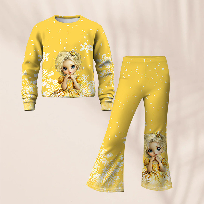 Girls' 3D Graphic Cartoon Snowflake Sports Suit Tracksuits Sweatshirt Flare Pants Set Long Sleeve Spring Fall Daily Casual Kids 4-12 Years Crew Neck Outdoor Vacation Sports Tailored Fit