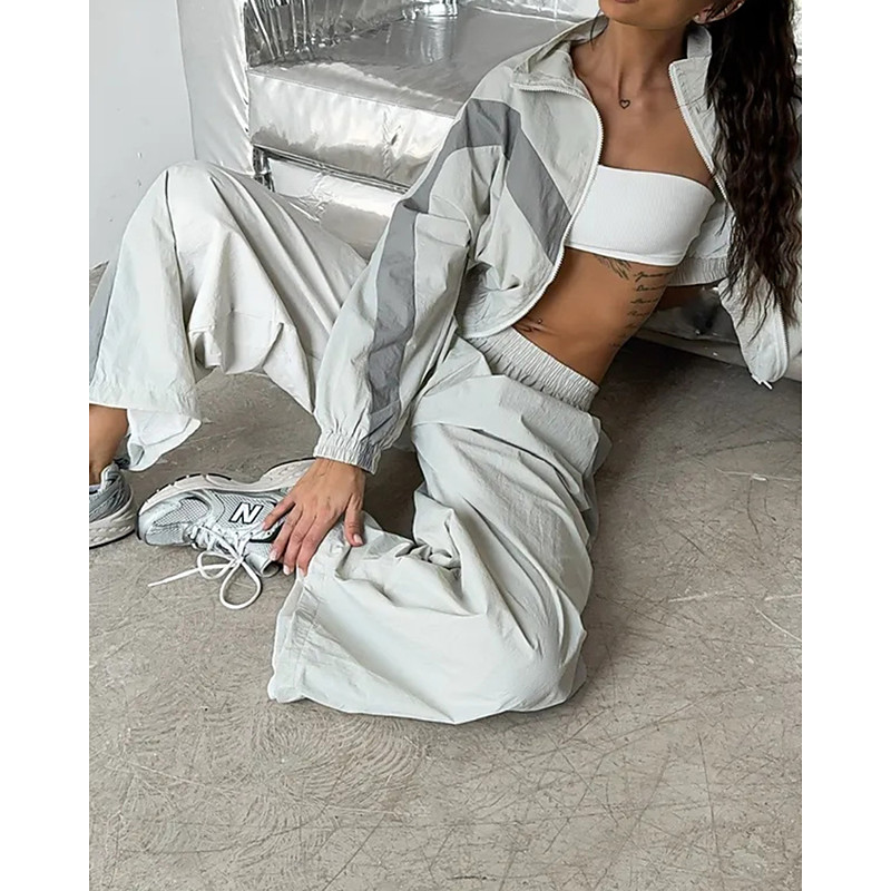 Women's Tracksuit Sweatpants Track Pants Zipper Pocket Solid Colored Clothing Suit Spring Black White Gym Training Running Windproof Long Sleeve Sport Activewear Micro-elastic Regular Fit