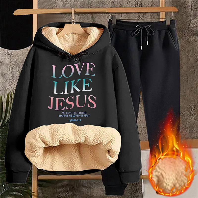 Women's Elegant Warm Fashion Two Piece Sets Tracksuit Pants Sets Long Sleeve Bishop Sleeve Crew Neck Round Neck Graphic Letter Print Outdoor Vacation Daily Black Pink Dark Pink Spring Loose Fit