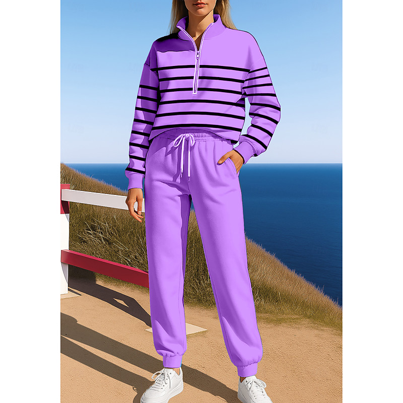 Women's Sweatshirt Tracksuit Sweatsuit Drawstring Zipper Geometric Jacket and Sweatpants Athletic Clothing Set Spring Blue Purple Casual Workout Outdoor Soft Baggy Long Sleeve Sport Activewear