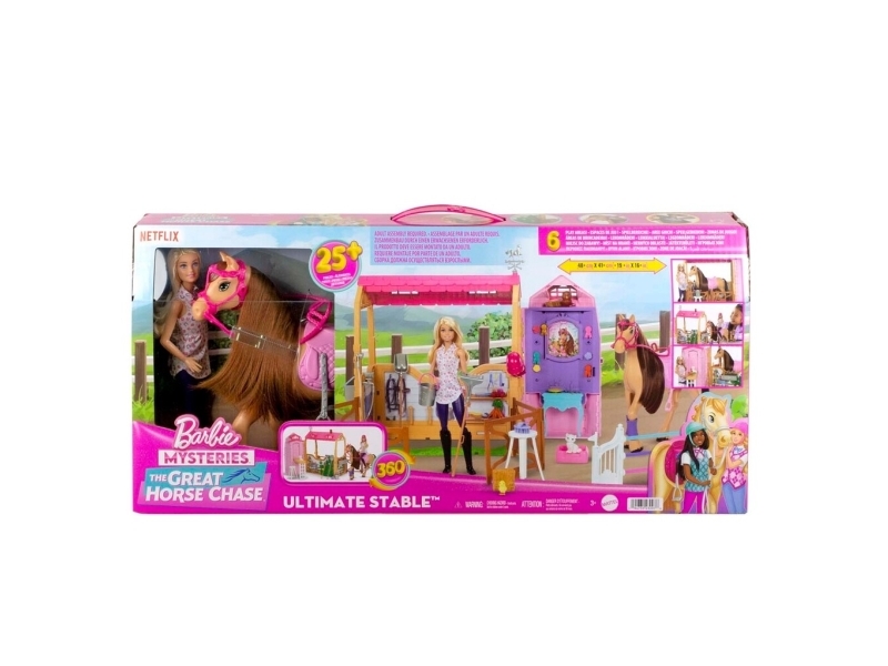 Barbie Mysteries: The Great Horse Chase Stable Playset with Doll, Toy Horse & Accessories, 25+ Pieces, Fashion doll, Female, 3 yr(s), Girl, 355.6 mm, 1.88 kg