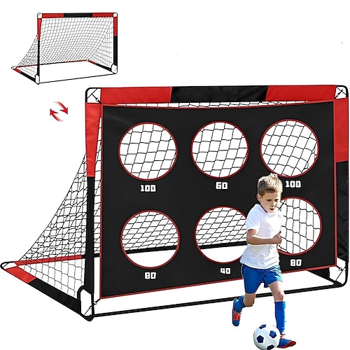 Porta da calcio 2 in 1 per bambini - rete bersaglio portatile per il giardino, tema Mondiali di calcio 2026, attrezzatura da allenamento per ragazzi e ragazze, rete da allenamento pieghevole con fori