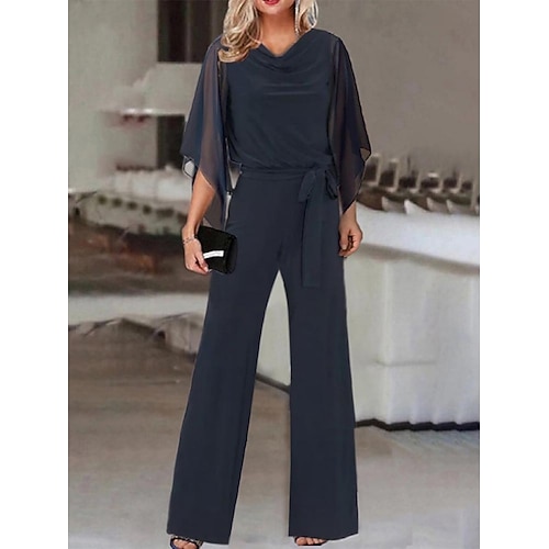 Per donna Normale Tuta Elegante Tinta unica Mezza Manica Gamba larga Girocollo Vita alta Vacanza Quotidiano Vestibilità regolare Nero Vino Blu marino Primavera