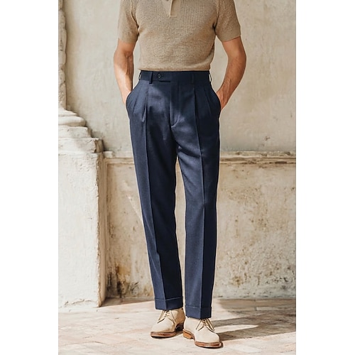 Uomo Cotone Lino Pantaloni Eleganti Pantaloni casual Affari Ufficio Formale Classico Casual Quotidiano Esercito verde Nero Blu marino scuro Tinta unica Vestibilità su misura Lungo Inelastico