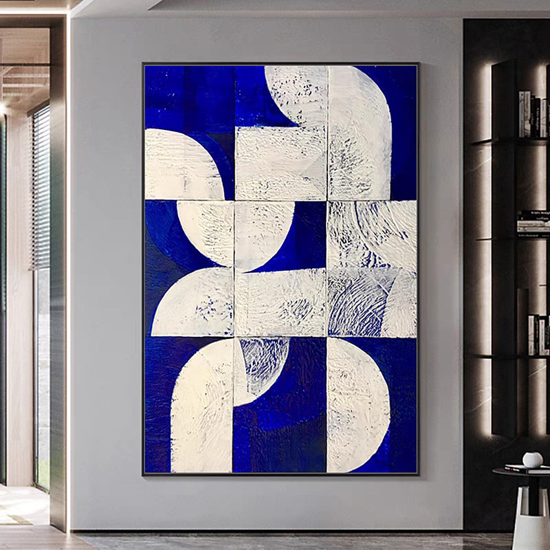 Mintura Handmade Abstract Geometric Color Block Oil Paintings On Canvas Wall Art Decoration Modern Picture For Home Decor Rolled Frameless Unstretched Painting