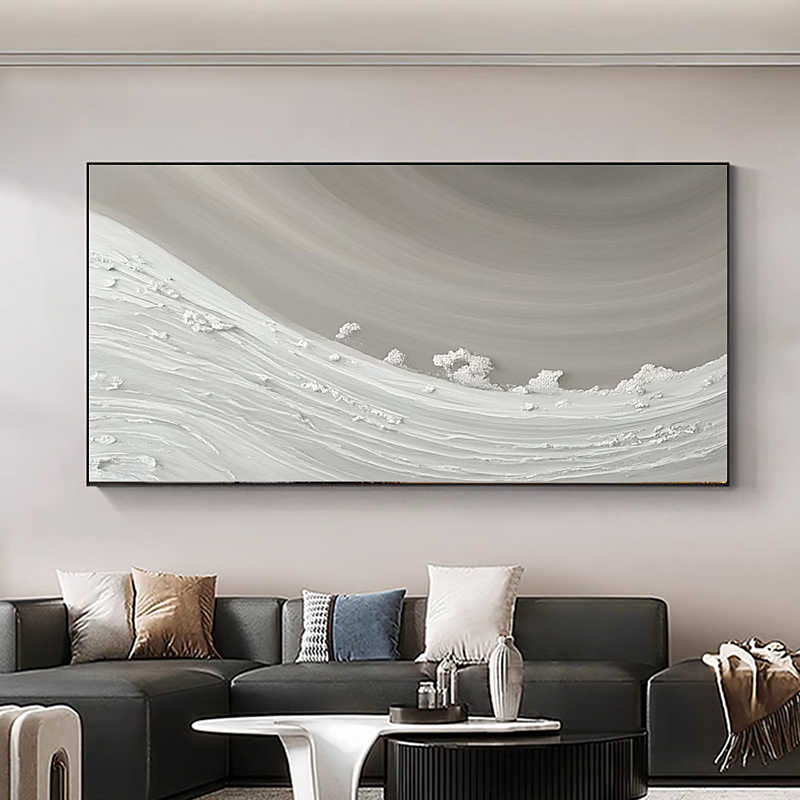 Handmade Gray White wave oil painting Wall Art modern Oil Painting Modern Abstract Ocean Wave Seascape Home Decoration Wall Art Decor Rolled Canvas