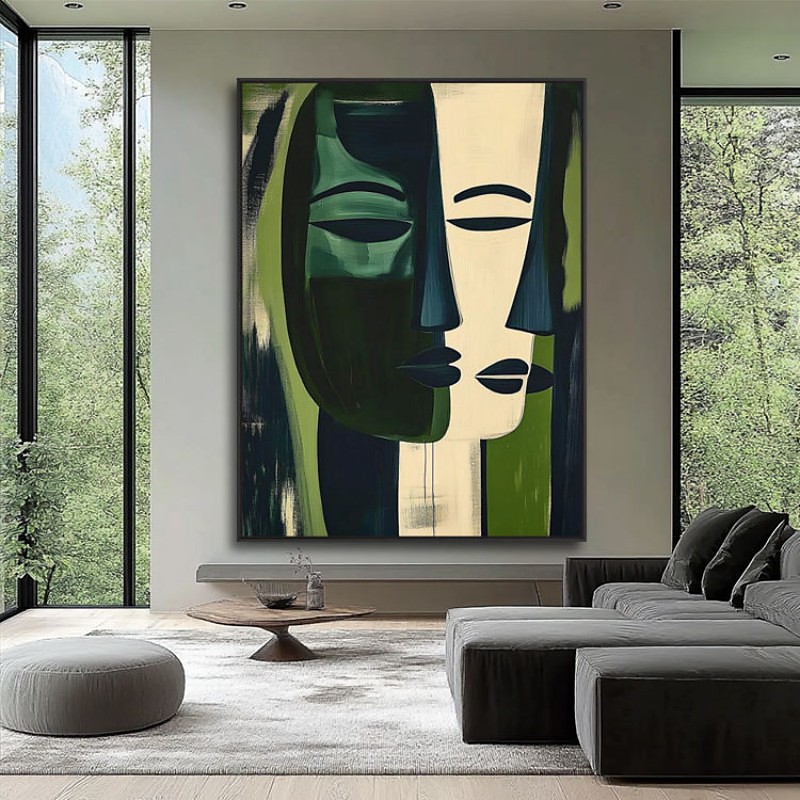 Handmade Oil Painting Canvas Wall Art Decoration Abstract Figures Green Face for Home Sofa Background Entrance Hall Decor Stretched Frame Hanging Painting/Rolled Frameless Unstretched Painting