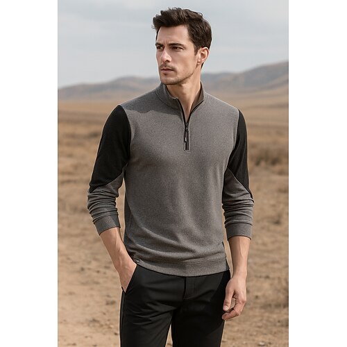 Per uomo Felpa Manica Lunga Collo Alto Primavera Autunno Inverno Quotidiano Con zip Patchwork All'aperto Vacanza Casa Nero Marrone Kaki Maglietta Top per Uomo