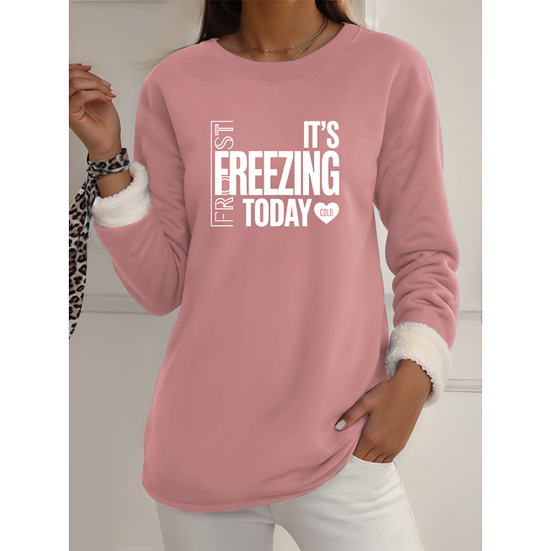 Women's Pullover Sweatshirt Graphic Letter Warm Casual Fuzzy Long Sleeve Crew Neck Round Neck Long Tops Street Casual Light Pink Black Dark Pink Blue Spring Fall Winter