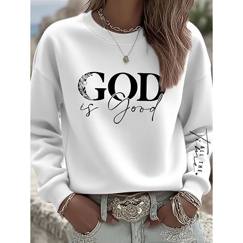 Women's Pullover Sweatshirt Letter Casual Comfrt Long Sleeve Crew Neck Round Neck Long Tops Street Dailywear Casual Print Black Pink Blue Gray Fall Winter