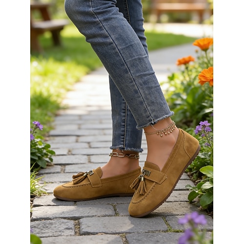 mocassini con nappe verdi da donna: calzature classiche e alla moda per il giorno di San Patrizio, adatte a sfilate, festival, feste e all'uso quotidiano