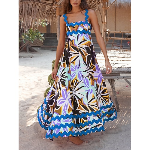 Per donna Abito maxi Abito a trapezio Abito Sottoveste Vacanza Casual All'aperto Uscire Vestibilità comoda Floreale Grafico Senza Maniche Spalline sottili Blu blu navy Nero Azzurro cielo Estate