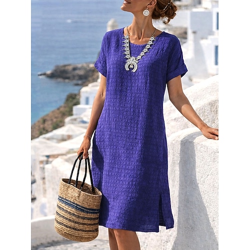 Per donna Abito Midi Finto cotone e lino Abito a Tubino Moda Moderno All'aperto Spiaggia Vacanza Vestibilità comoda Semplice Manica Corta Girocollo Nero Bianco Verde chiaro Rosa Estate Primavera